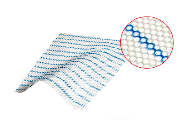 - Сетка изготовлена из биологически инертной мононити, устойчивой к воздействию тканевых жидкостей и сохраняющей свою прочность и эластичность.