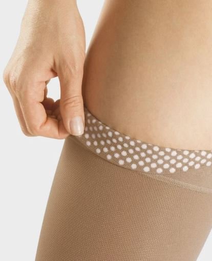 Компрессионные чулки Medi Duomed DС151 создают градуированное давление на мягкие ткани и вены ног: 100% - в области лодыжки, 70% (от давления на лодыжке) - в верхней части голени, 40% - на бедре. За счет этого восстанавливается отток венозной крови от стоп к сердцу. В результате носки чулок 1 класса компрессии происходит профилактика варикоза и тромбоза, ноги не отекают и не болят к вечеру. Резинка на силиконовой основе не позволяет “сползать” чулкам в течение дня.Показания к применению: