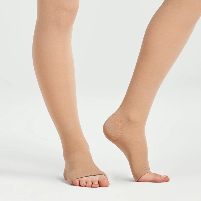 - Открытый мыс с эластичным краем оставляет пальцы ног открытыми для воздухообмена и гигиенических процедур.