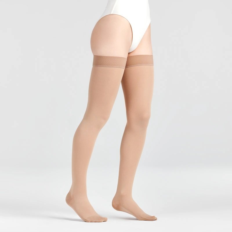 - Резинка с точечно нанесенным силиконом надежно фиксирует чулок на ноге;