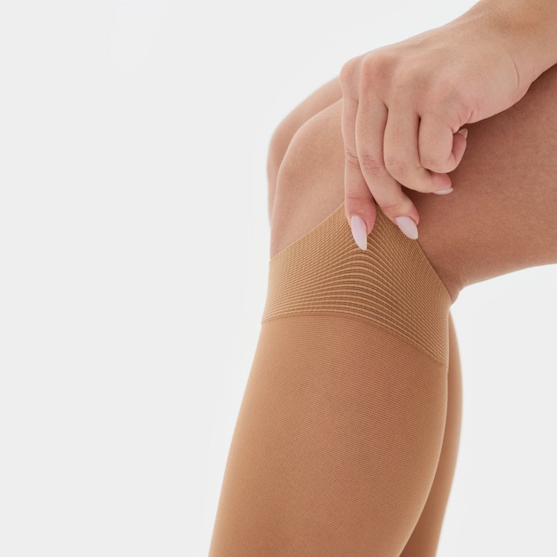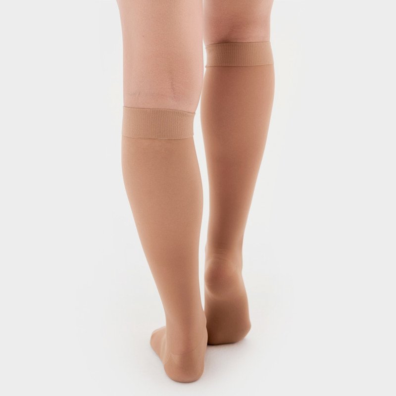 - Полотно компрессионных колготок само принимает естественную форму ног и без складок в местах стыков (лодыжки, колени);