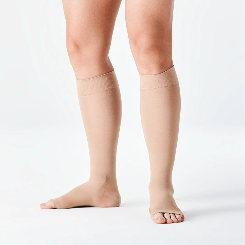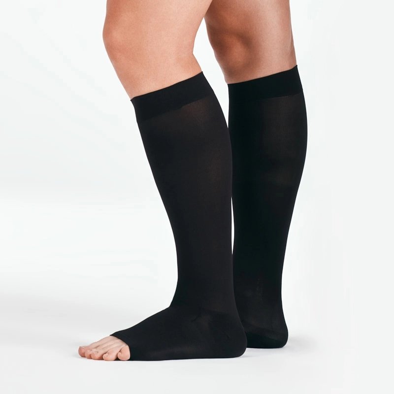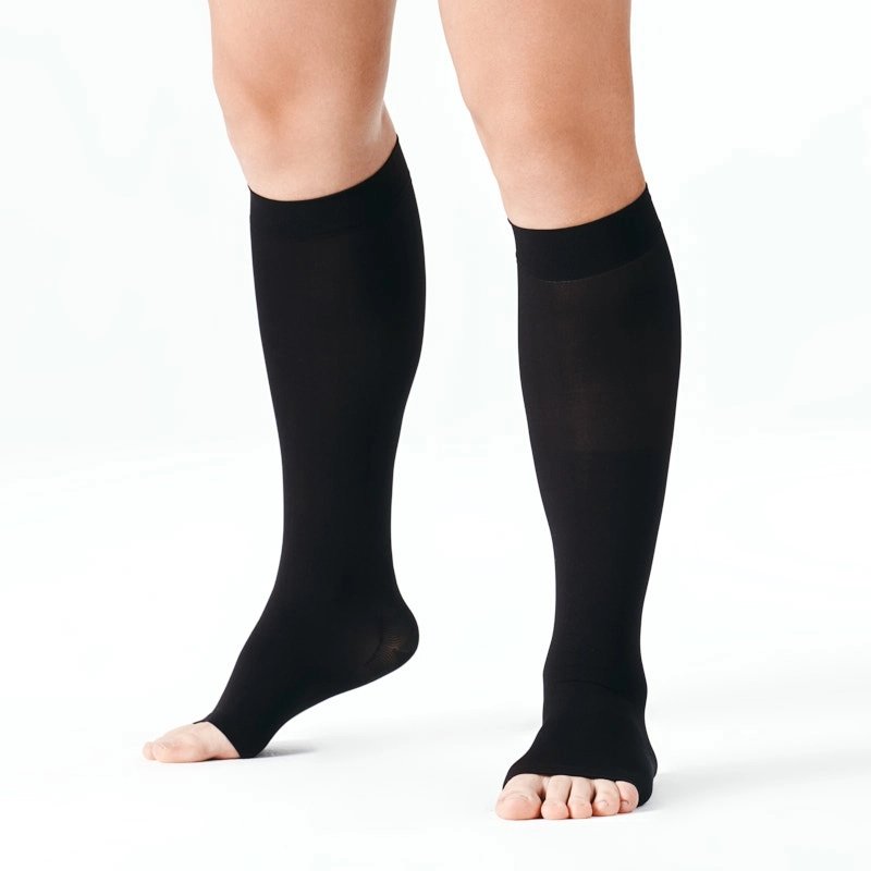 - Открытый мыс с эластичным краем оставляет пальцы ног открытыми для воздухообмена и гигиенических процедур.