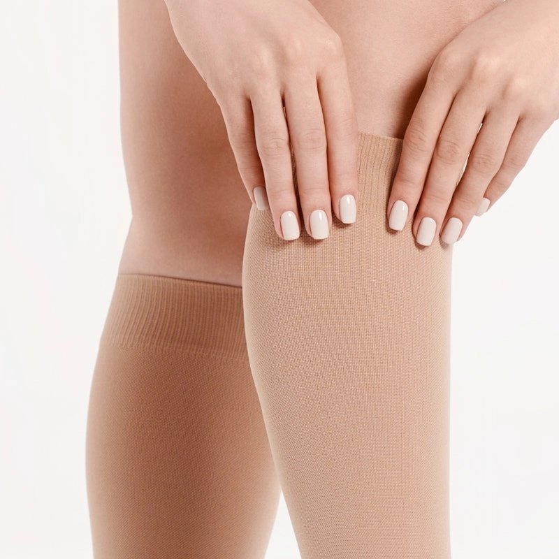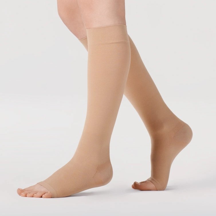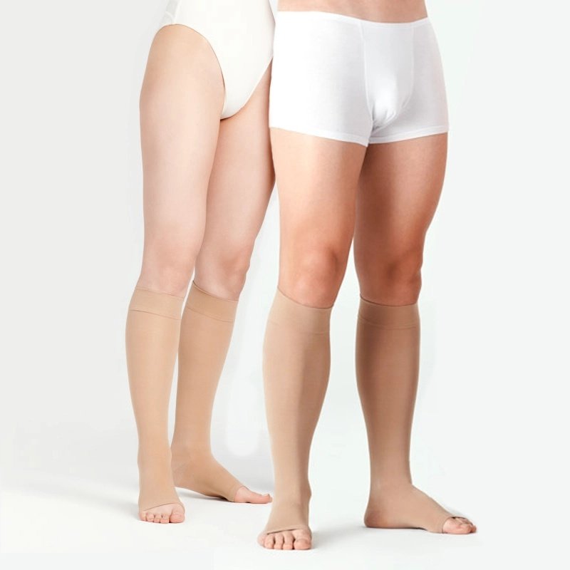 - Круговая вязка со стержневой нитью обеспечивает точный градиент распределения компрессии с максимальным давлением в области лодыжки, соответствующим классу компрессии;
