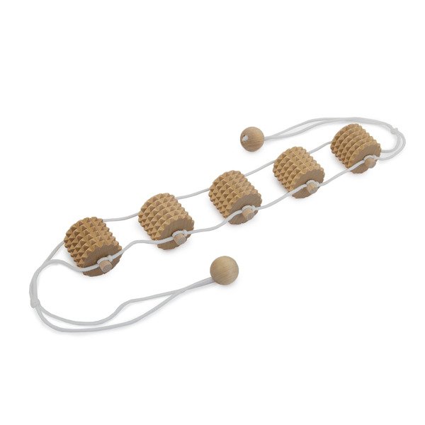 Массажер дерев. ЛЕНТОЧНЫЙ зубчатый 3215 разработан для массажа любых участков тела, в том числе спины, плечевого пояса, шеи. Он изготовлен из дерева, имеет форму ленты с зубчатыми роликами.