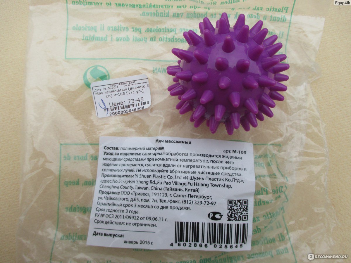 - Мяч массажный Тривес М-105 сделан из медицинской резины.