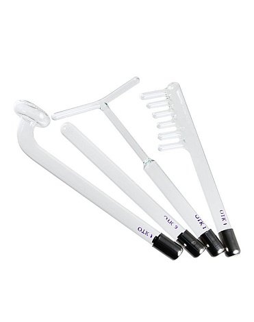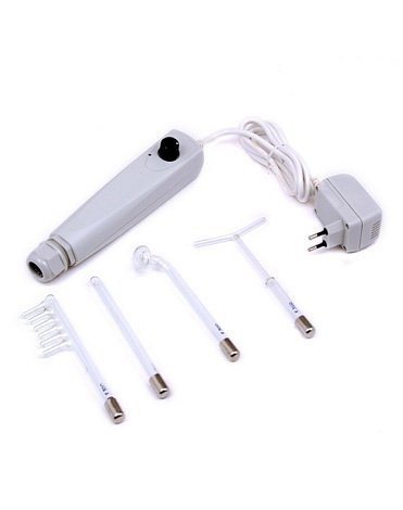 - В комплекте 4 насадки: электрод-расческа для волос, грибовидный электрод для кожи, электрод-палочка для внутриполостных процедур и рогатка для борьбы с остеохондрозом, варикозом, целлюлитом и т.д.
