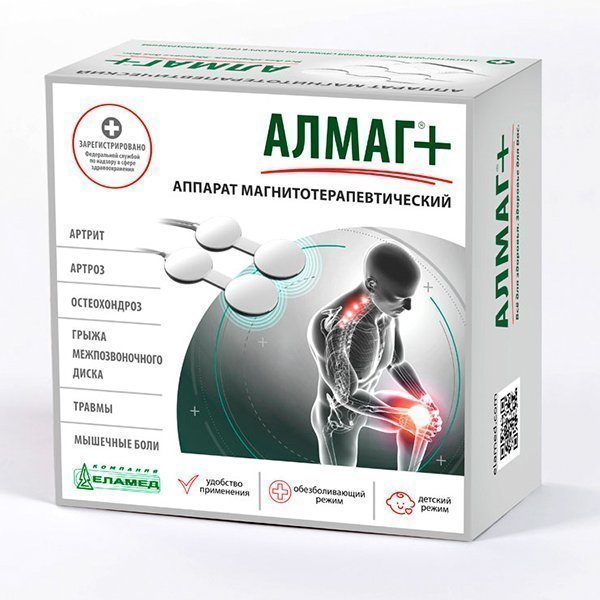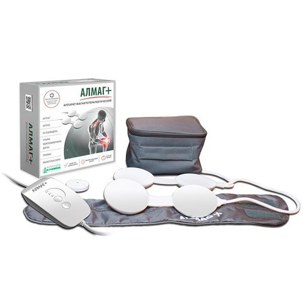 Алмаг+ предназначен для физиотерапевтического лечения в домашних условиях. Отличительной особенностью этого аппарата является то, что он подходит для всей семьи, в том числе и для детей от 1 месяца. Кроме того, аппарат оснащен режимом против сильных болей и воспалений. Сеансы магнитотерапии помогут снять болевой синдром, мышечный спазм, отек, а также устранить воспаление. Лечение при помощи этого прибора способствует скорейшему восстановлению пораженных органов и снижает риск повтора заболевания.