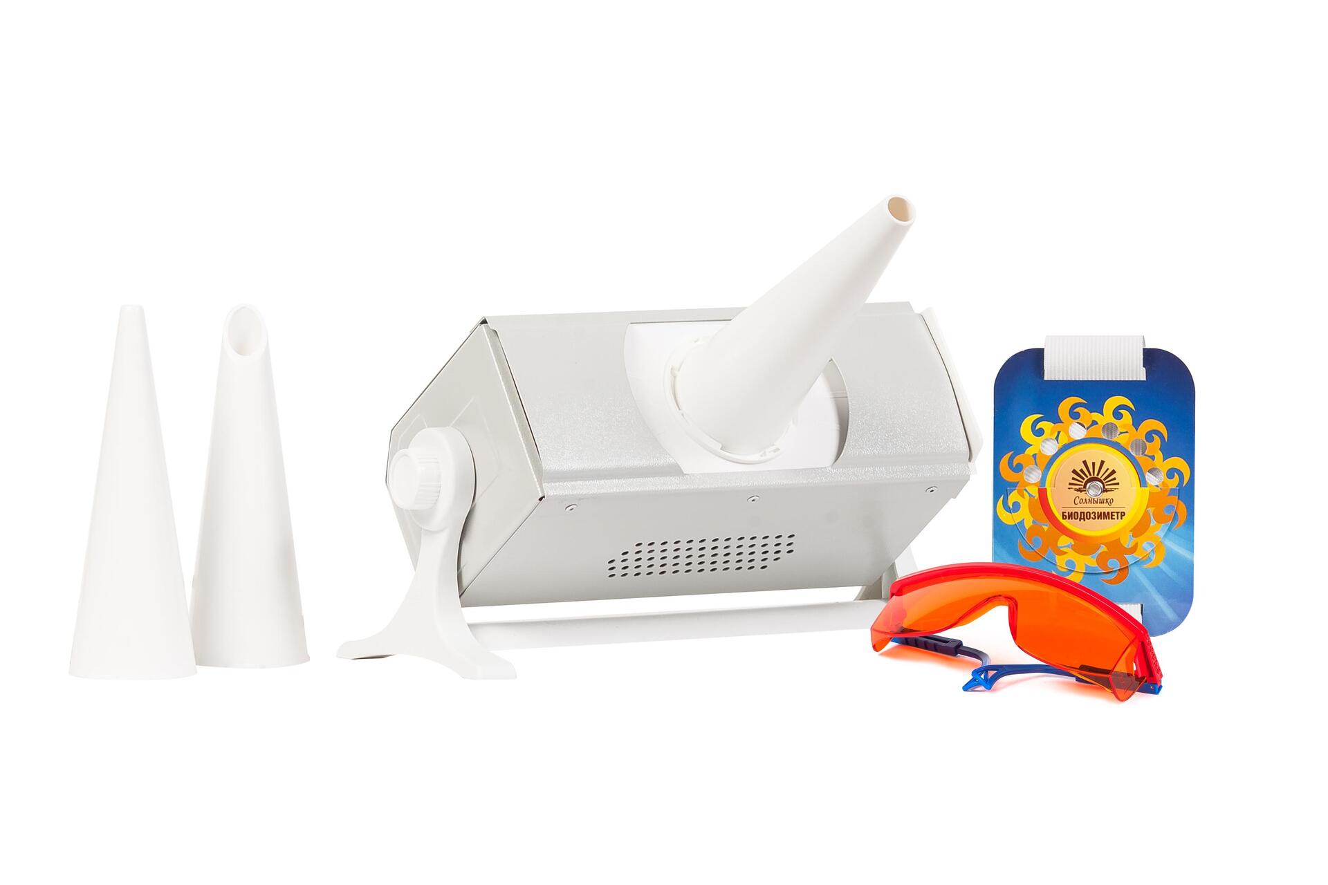 Облучатель Солнышко ОУФК-01 предназначен для общего, местного и внутриполостного облучения ультрафиолетом. Ультрафиолетовое облучение помогает нормализовать иммунный статус, оказывает бактерицидное действие, улучшает репаративные процессы, нормализует обмен веществ. В комплект с облучателем входят: защитные очки, насадка с выходным отверстием 5 мм, насадка с выходным отверстием 15 мм, насадка с выходным отверстием под углом 60 градусов, биодозиметр. Прибор готов к работе через 5 минут после загорания УФ-лампы. Облучатель может работать в течение 8 часов в сутки в следующем режиме: 10 минут работы и 15 минут перерыва.Показания к применению: