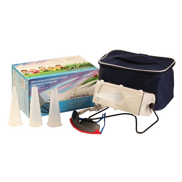 Облучатель Линия Здоровья ОУФК-09-01 предназначен для общего, местного и внутриполостного облучения ультрафиолетом. Ультрафиолетовое облучение помогает нормализовать иммунный статус, оказывает бактерицидное действие, улучшает репаративные процессы, нормализует обмен веществ. В комплект с облучателем входят: защитные очки, тубус 15 мм, тубус 5 мм и тубус со скосом под углом 60 градусов, сумка.Показания к применению: