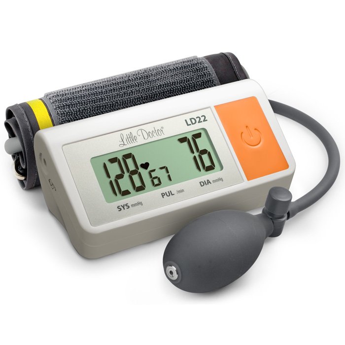Полуавтоматический тонометр LD22 имеет небольшой размер и удобен в использовании. Манжета накачивается вручную при помощи специальной “груши”, далее нажатием на одну кнопку запускается процесс измерения. Это одна из наиболее бюджетных моделей ассортимента Little Doctor.