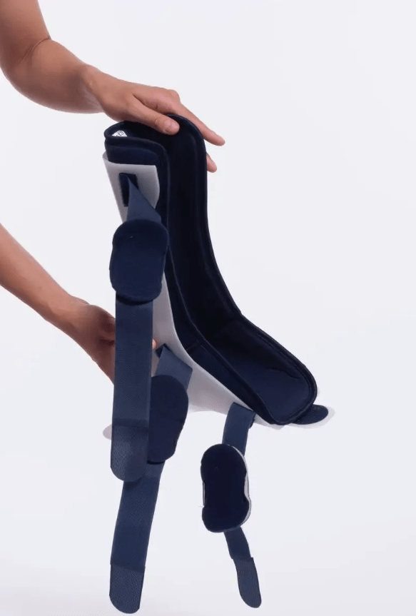 - Анатомическая форма точно повторяет контуры голеностопного сустава и регулируется по размеру с помощью застежек-липучек, обеспечивая идеальную посадку и комфорт во время использования.