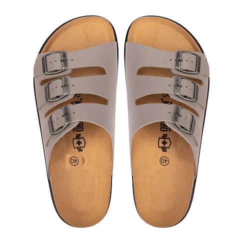 Пробковый материал, из которого изготовлена подошва этой обуви, является не только очень легким и прочным материалом, но и обладает превосходными амортизационными свойствами. Она эффективно снижает ударную нагрузку на позвоночник и суставы ног .Разделители для пальцев обеспечивают дополнительную поддержку и комфорт, а углубление для пятки помогает удерживать стопу в правильном положении. Все это способствует улучшению кровообращения и снижению усталости ног.Показания к применению: