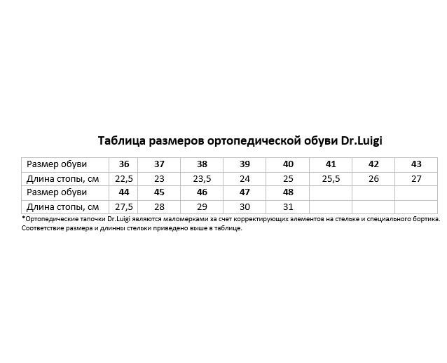 Шлепанцы выполнены из мягкого натуральной кожи, с помощью чего легко подстраиваются под стопу любой формы. Подошва имеет амортизирующий эффект, позволяющий снять нагрузку с позвоночника, стоп и лодыжек во время ходьбы. Использование медицинской обуви Dr.Luigi является отличной профилактикой заболеваний стоп.Показания к применению: