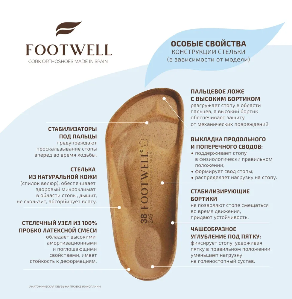 Footwell — это удобные сабо для женщин, разработанные испанским брендом Footwell. Это идеальная обувь для людей, ценящих комфорт. Сабо из войлока натурального цвета не только дополнит гармонию домашнего образа, но и подарит чувство тепла и уюта. Сабо можно носить в различных ситуациях, включая прогулки, походы по магазинам. Они удобны и в домашних условиях, на даче или в офисе, если дресс-код позволяет носить удобную обувь.