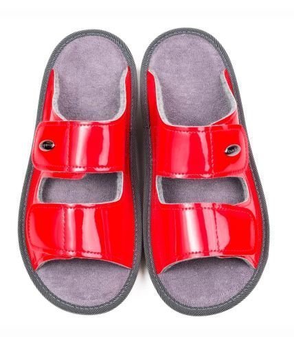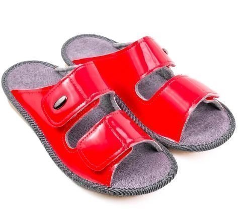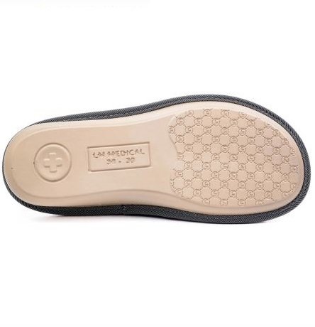 Верх сделан из экокожи, а подкладка из трикотажного полотна, которое сохраняет форму и обеспечивает отличный теплообмен и влагоотведение. Две широкие липучки надёжно закрепляют обувь на стопе, а углубление в пятке стабилизирует ее правильное положение. Несъемная ортопедическая стелька с метатарзальным валиком поддерживает продольный и поперечный своды стопы, адаптируясь к каждому шагу. Тапочки имеют гибкую нескользящую подошву. Благодаря особой конструкции ортопедической обуви модели LM-809.039, вес и нагрузка на стопу распределяются равномерно, а ударное воздействие на колени и пятки при ходьбе смягчается.Показания к применению: