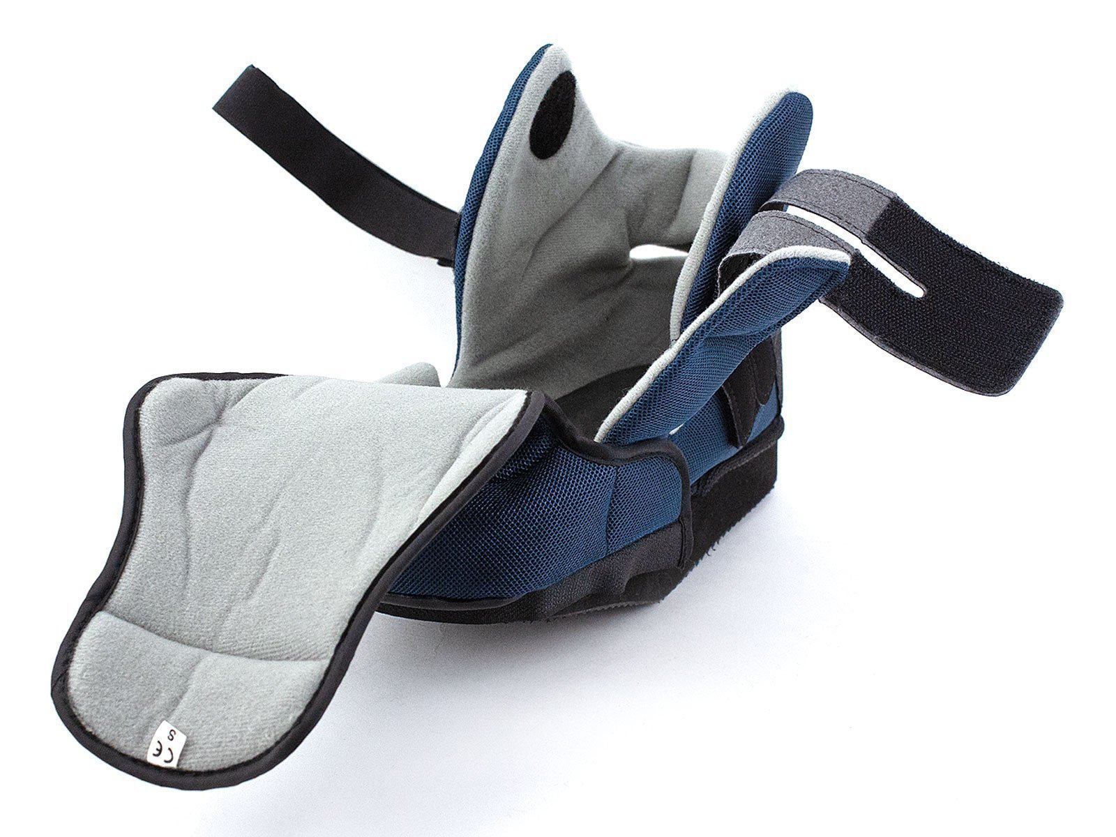 - Верх обуви сделан из дышащих гипоаллергенных материалов, обеспечивающих комфортный микроклимат. Для защиты раневой повязки от пыли и влаги, а также для утепления в холодную погоду обувь комплектуется специальной накладкой на носочную часть.