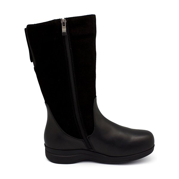 Зимние сапоги Dr.Spektor 1806-1 имеют увеличенную полноту. В верхней части сапог предусмотрена эластичная резинка, поэтому они легко подойдут женщинам с объемными икрами, а также людям с различными деформациями стопы (“косточка”, распластанность стопы и т.д.). Сапоги выполнены из комбинации натуральных материалов: кожи, замши, меховой подкладки. В них тепло и комфортно в зимнюю погоду. Они отлично подойдут для пеших прогулок.