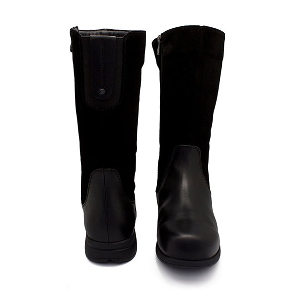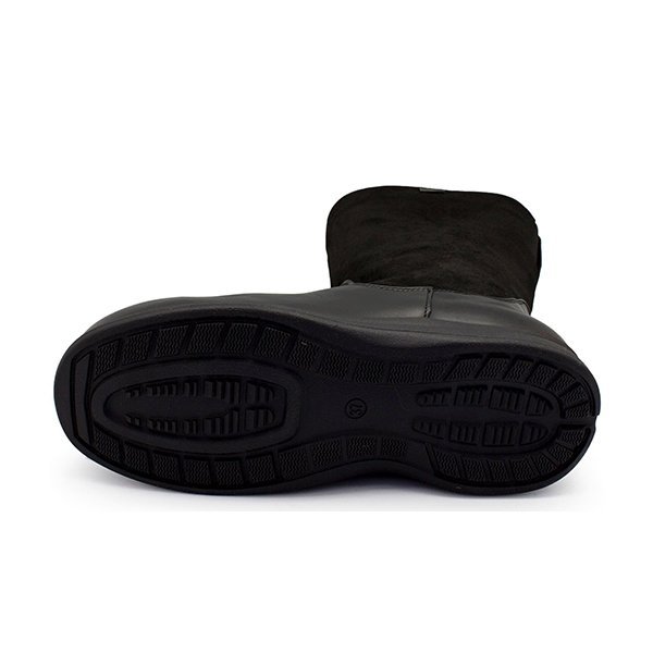 - Увеличенная полнота. Сапоги подходят людям с объемными икрами, высоким подъемом ноги и/или широкой стопой, а также тем, у кого есть “косточка” на большом пальце или другие деформации стопы. В верхней части сапог предусмотрена эластичная резинка, благодаря которой они отлично садятся в области икр, не сдавливая ногу.