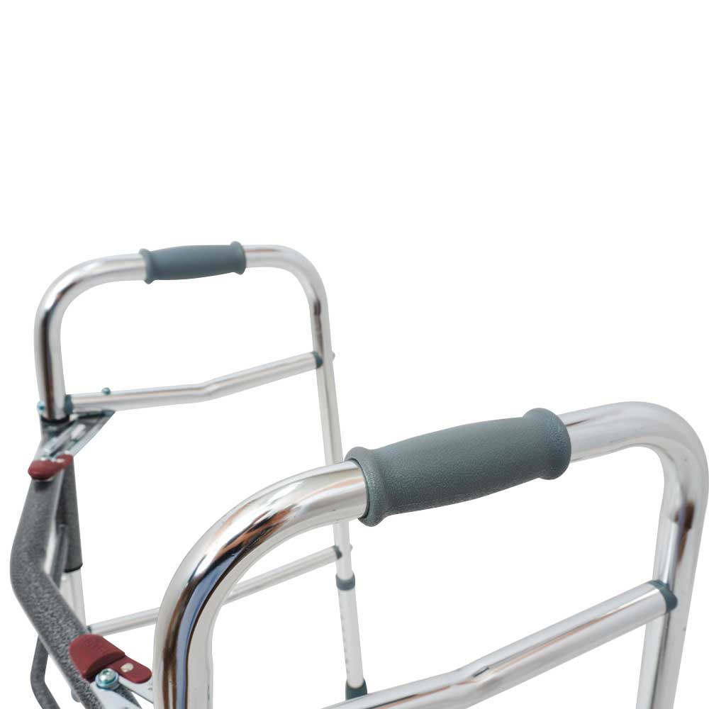- Складной механизм позволяет удобно переносить ходунки, а также компактно хранить их, что особенно актуально в небольших квартирах.