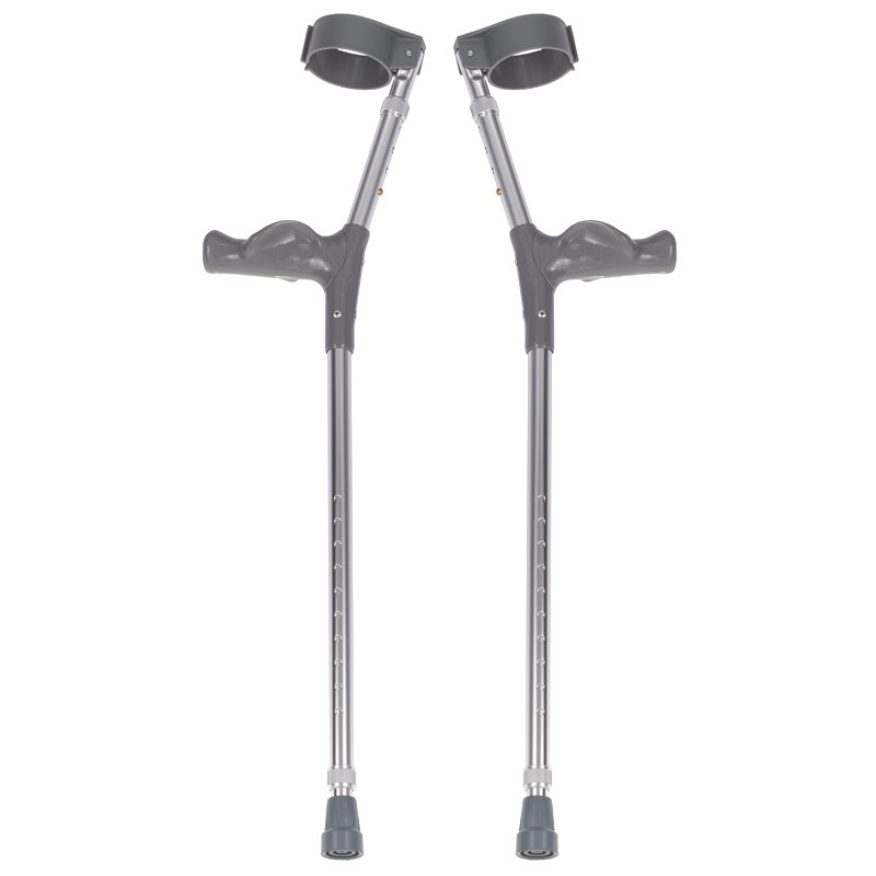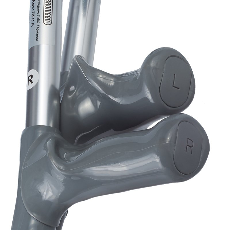 - Легкие и прочные костыли BRONIGEN BFC A изготовлены из алюминиевого сплава и оснащены нескользящими рукоятками и подлокотниками из прочного пластика.