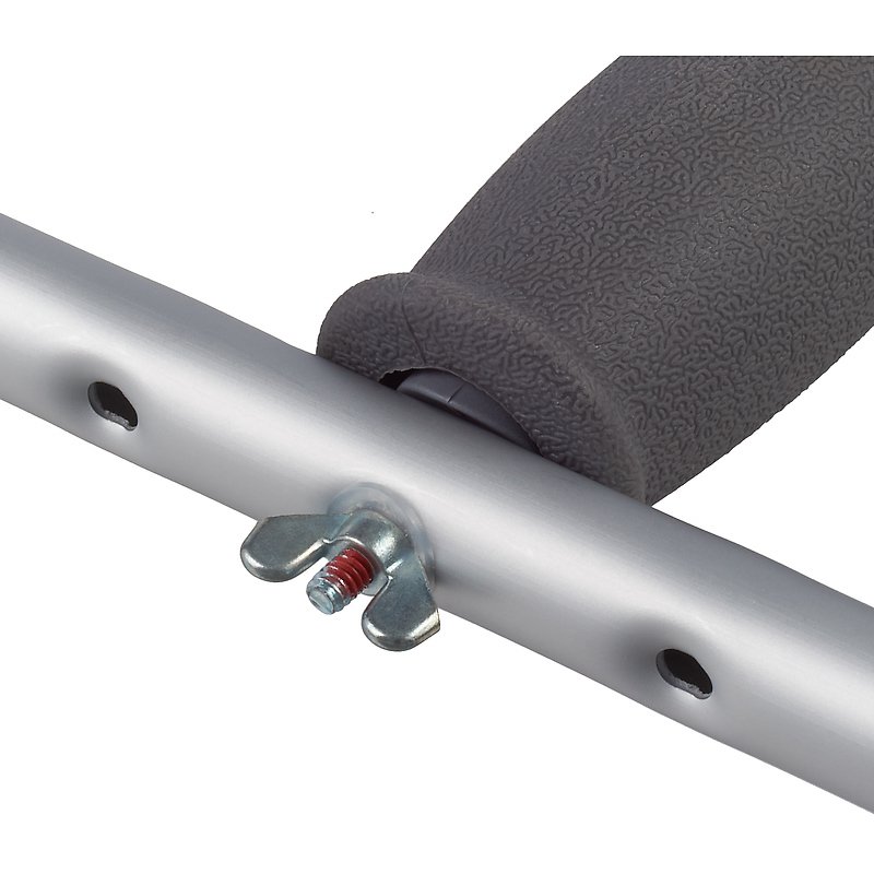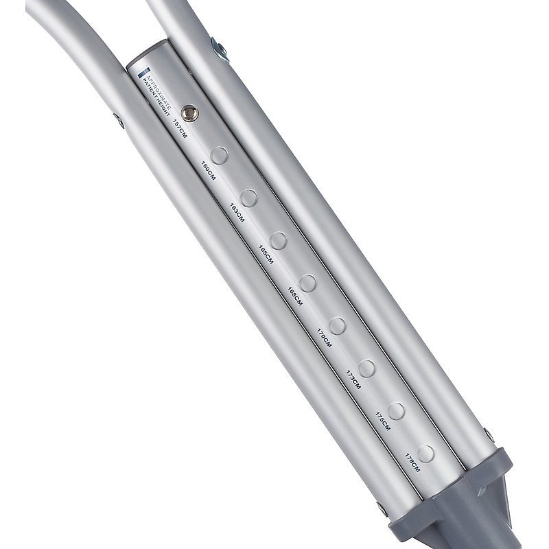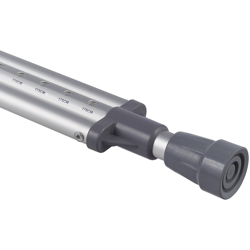- Регулируемая высота. Вы с легкостью подберете высоту костылей, которая удобна именно вам. Через каждые 25 мм в боковых стойках костылей предусмотрены специальные отверстия, чтобы вы смогли отрегулировать высоту изделия. Также изменяется и высота ручки костыля.