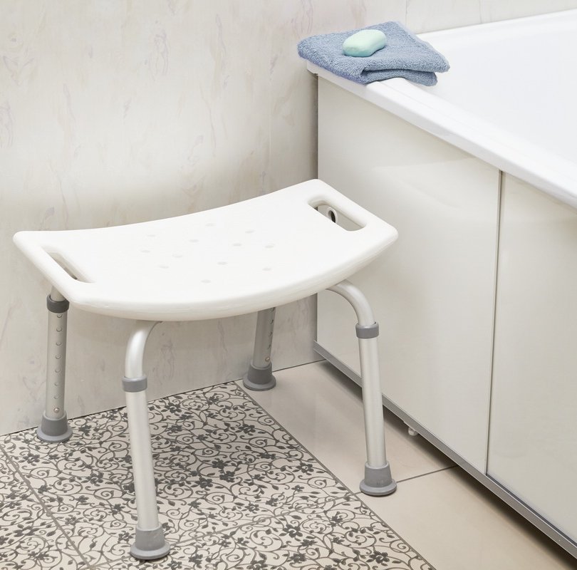 Стулпредназначен для проведения гигиенических процедур в ванной. Табурет необходимо установить в ванну ближе к душевой лейке или в душевую кабину. Затем усадить на сиденье человека. Больному не нужно принимать душ стоя или опускаться слишком низко на дно ванны.Высота табурета регулируется за счет телескопических ножек: 8 положений с шагом 2,5 см. Во время принятия ванны больной может держаться за ручки по бокам сиденья для большей устойчивости. Сидение табурета с перфорацией, благодаря которой вода эвакуируется и не скапливается на сиденье. Для безопасности предусмотрены противоскользящие наконечники.