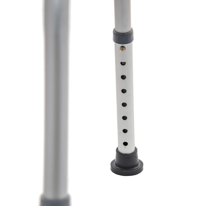 Высота табурета регулируется за счет телескопических ножек: 8 положений с шагом 2,5 см. Во время принятия ванны больной может держаться за ручки по бокам сиденья для большей устойчивости. Сидение табурета с перфорацией, благодаря которой вода эвакуируется и не скапливается на сиденье. Для безопасности предусмотрены противоскользящие наконечники.